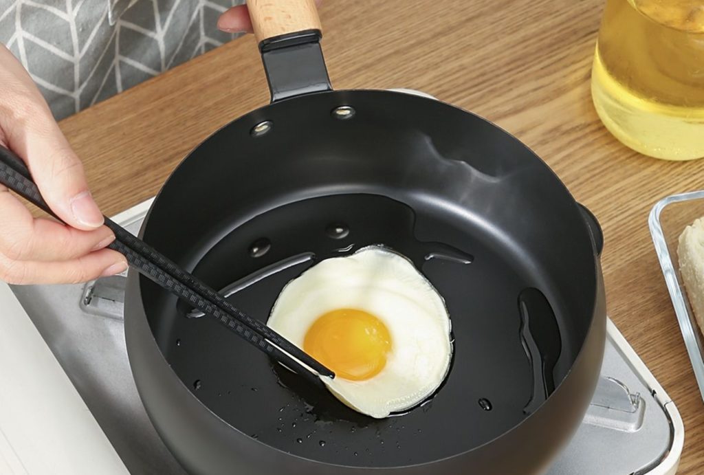 友人の家にお邪魔した時にこの卵焼き用のフライパンで卵焼きを作っているのを見て、「なんで持ってこなかったんだろう!」と衝撃を受けたのを覚えています。